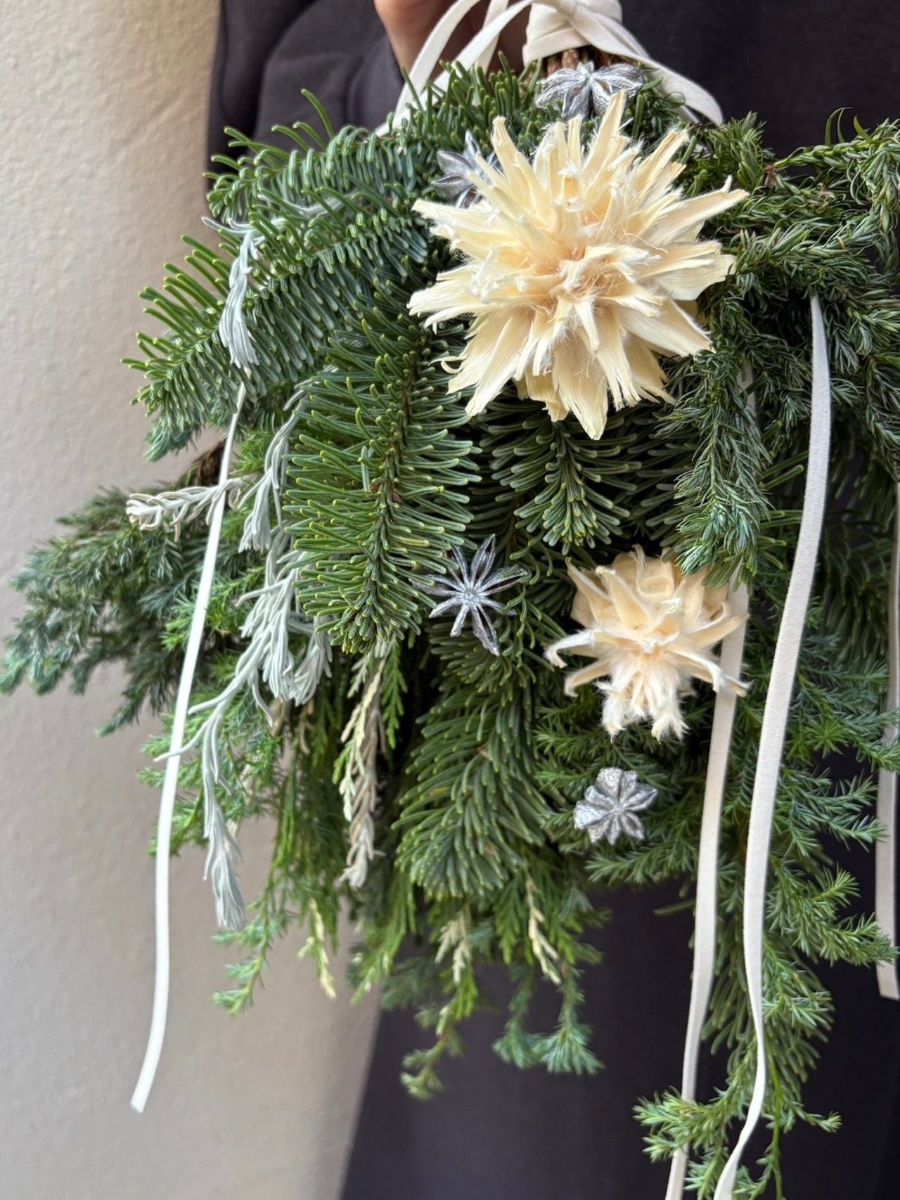クリスマスの後も壁かざりや置物として長くお楽しみいただけるスワッグは、